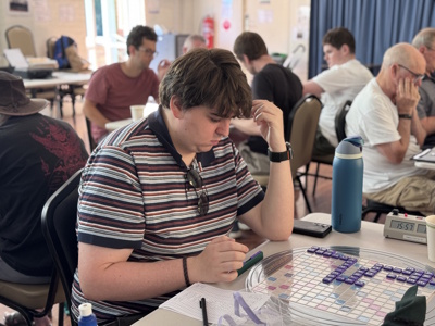 Congratulations to Edward Okulicz for winning the last Victorian Scrabble event for 2025. Congratulations also to Trevor (2nd), David (3rd), and Fadlan (4th). We celebrated four rating band winners (Karen, Bobby, Mardi, and Paula) whilst novelty prizes were offered for the three highest scoring words which start with a letter in the word DECATHON. Sumbul’s 144 for CHANTERS, along with David’s 130 for TRIAZIN, and Karen’s 111 for EXULTANT took out those honours.